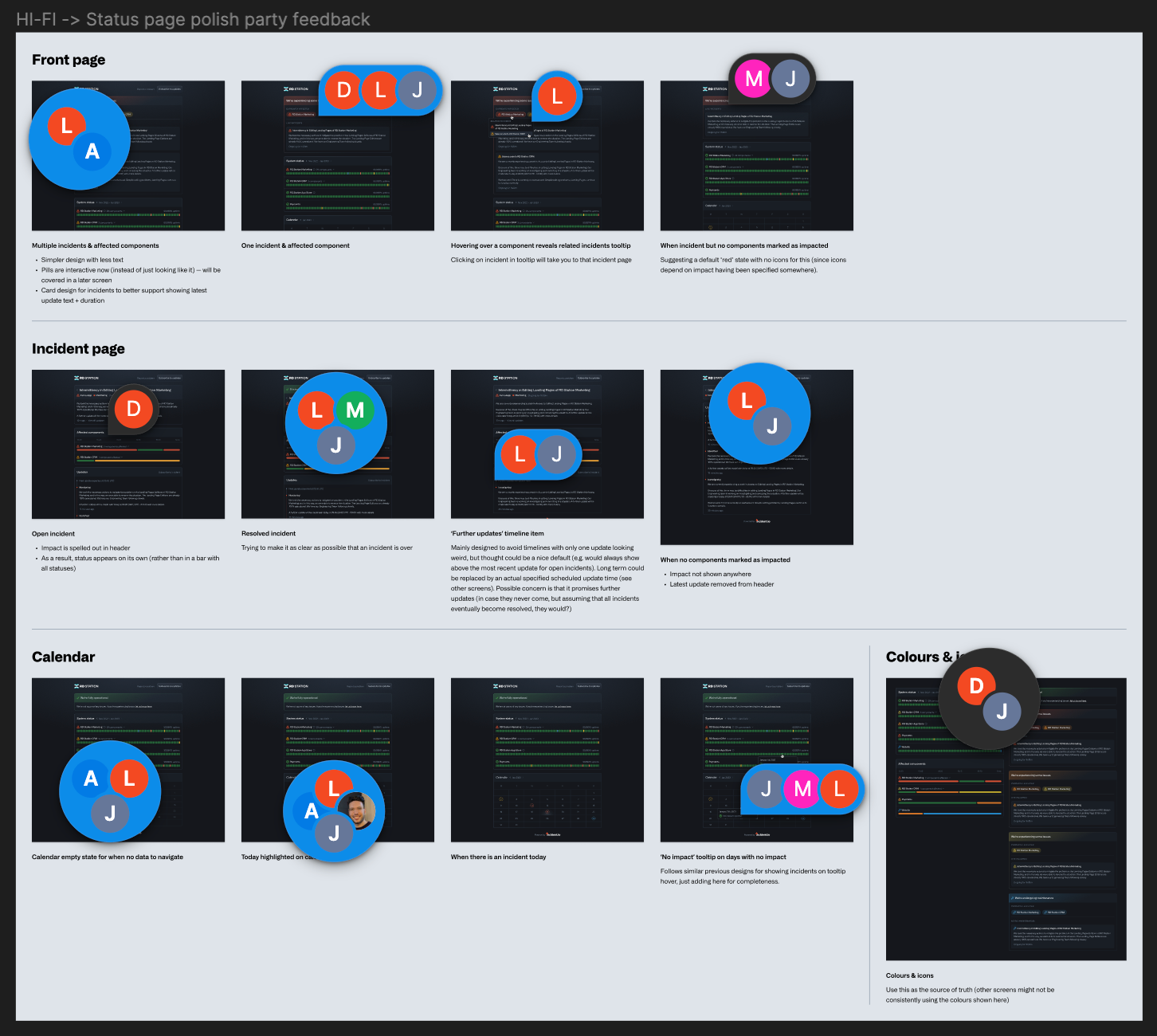 If the feature affected the public status page, we made sure we had design sign-off. If it was confined to a dashboard, we’d go ahead and have a go at the design ourselves.