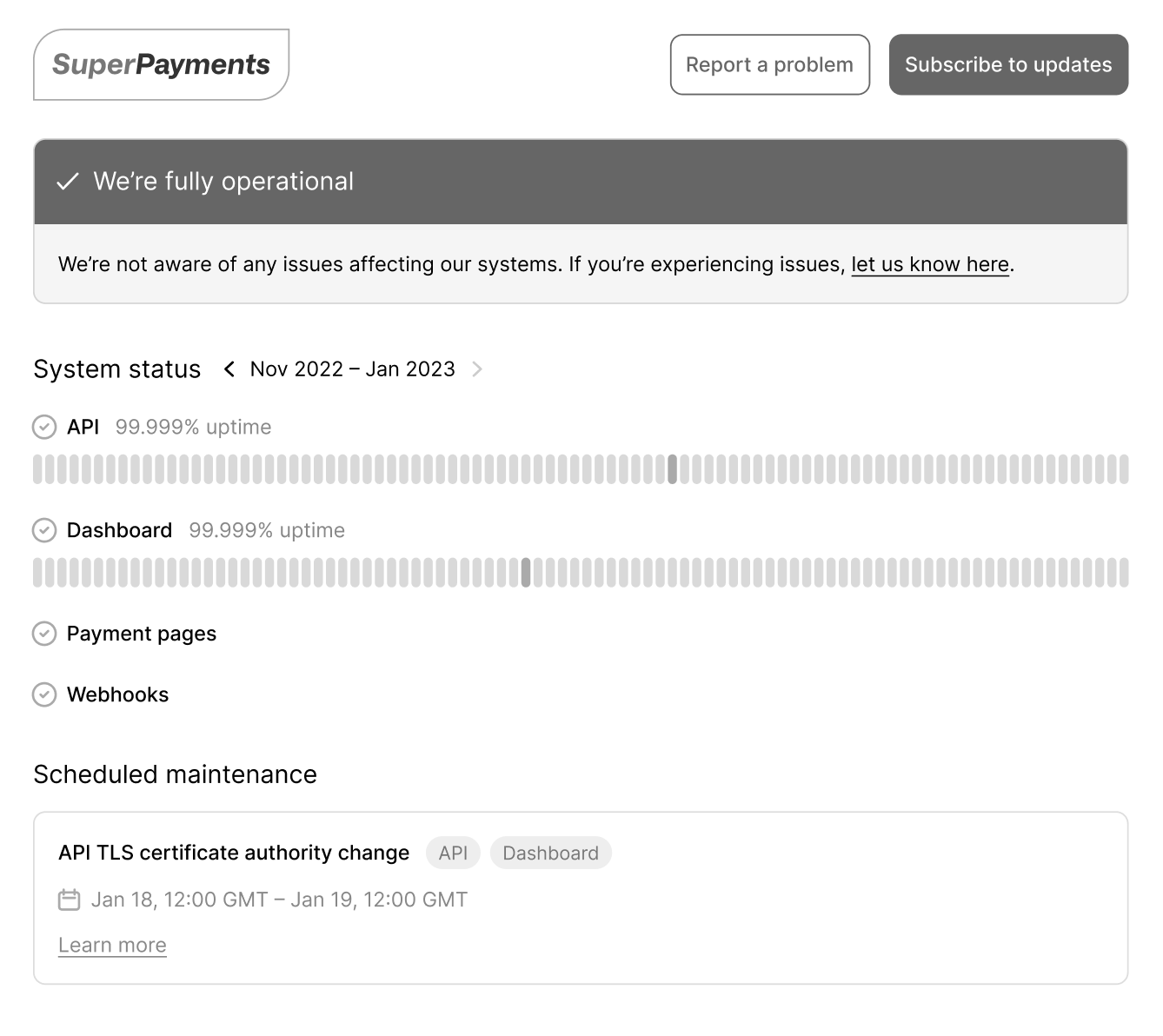 Status pages are a relatively well-known concept, and there’s an expectation around what people expect to see when they first land on one.