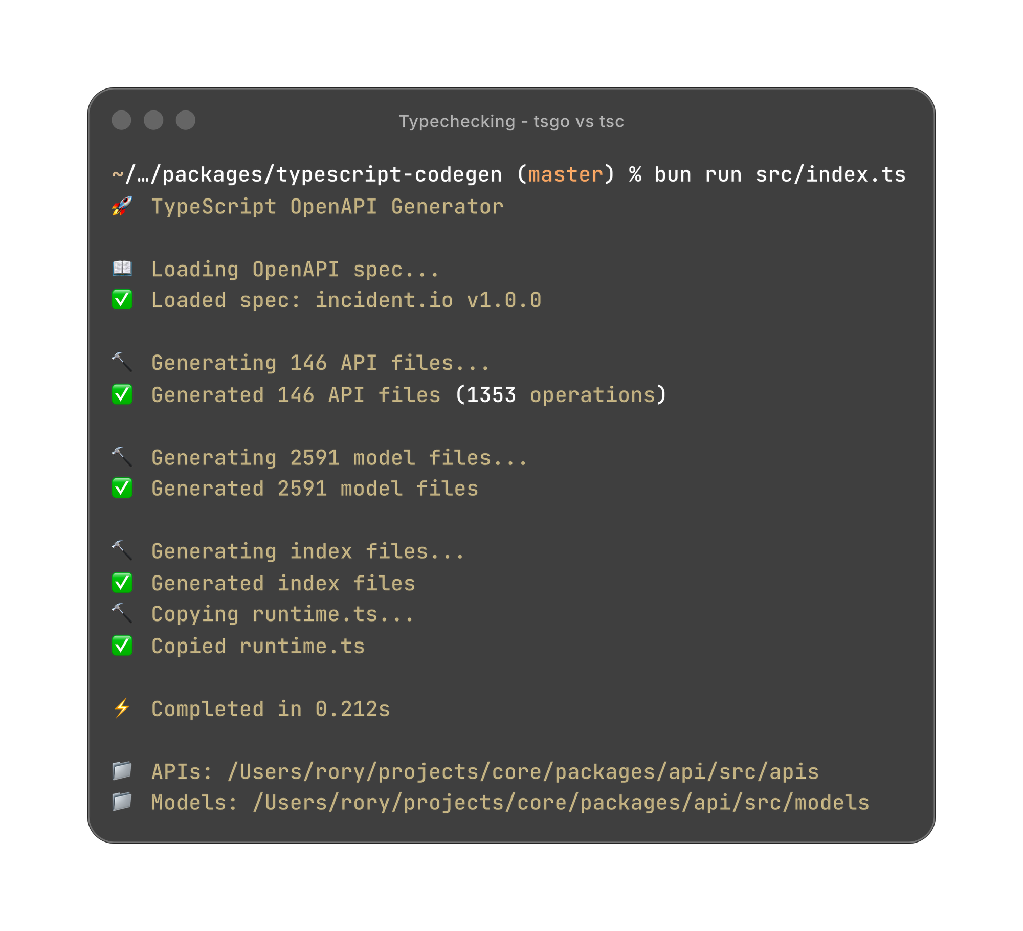 API client generation went from 45 seconds down to 0.21 seconds, an over 200x speedup!