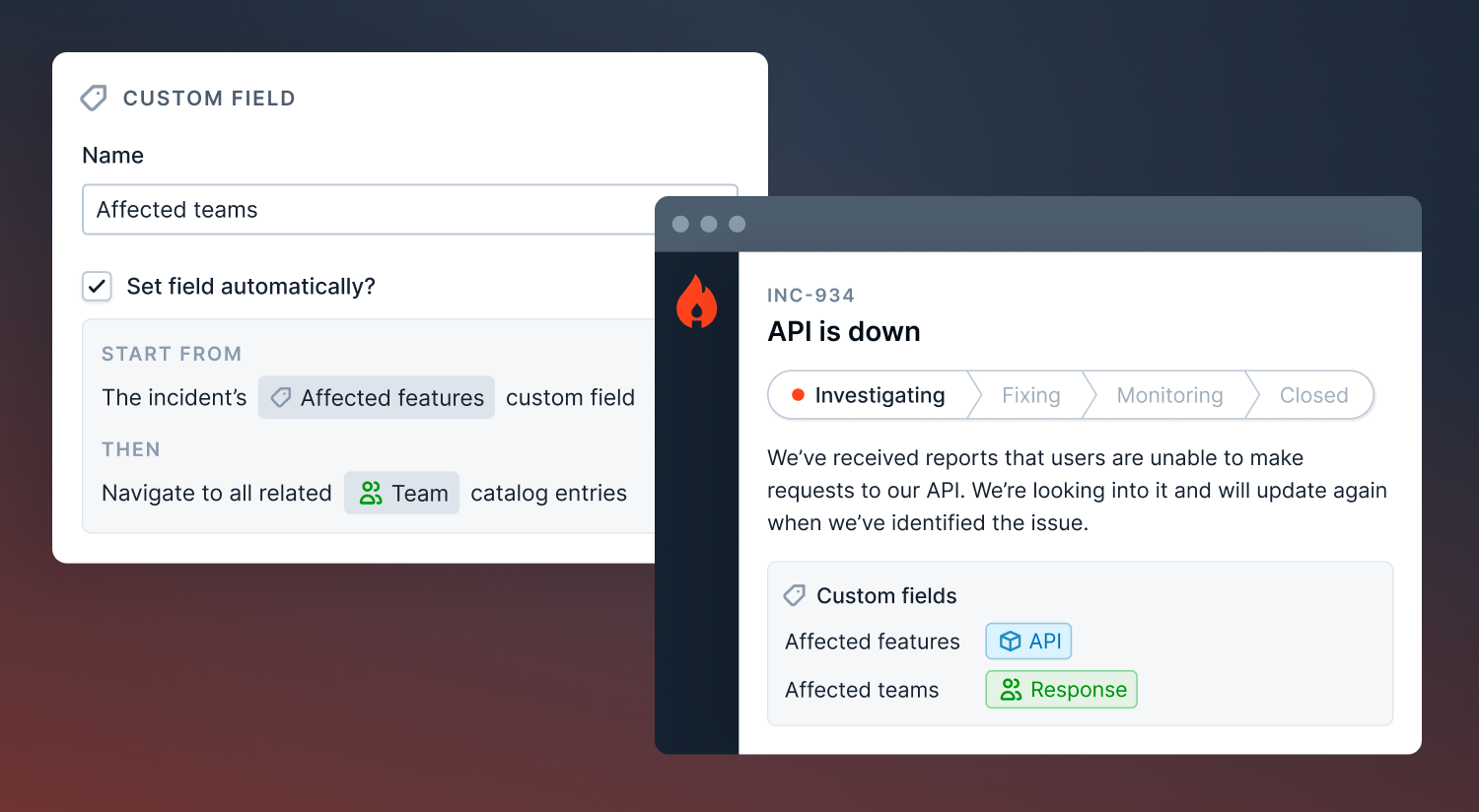 Now that we tag incidents with “Affected features,” wouldn’t it be nice if we could automatically infer the “Affected teams” from who owns any of those features?