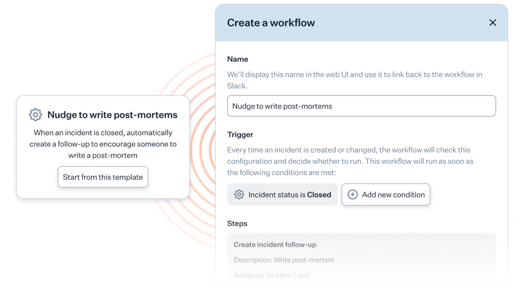 The features in Workflow establish an incident response process that's thorough. The result is less downtime from incidents.