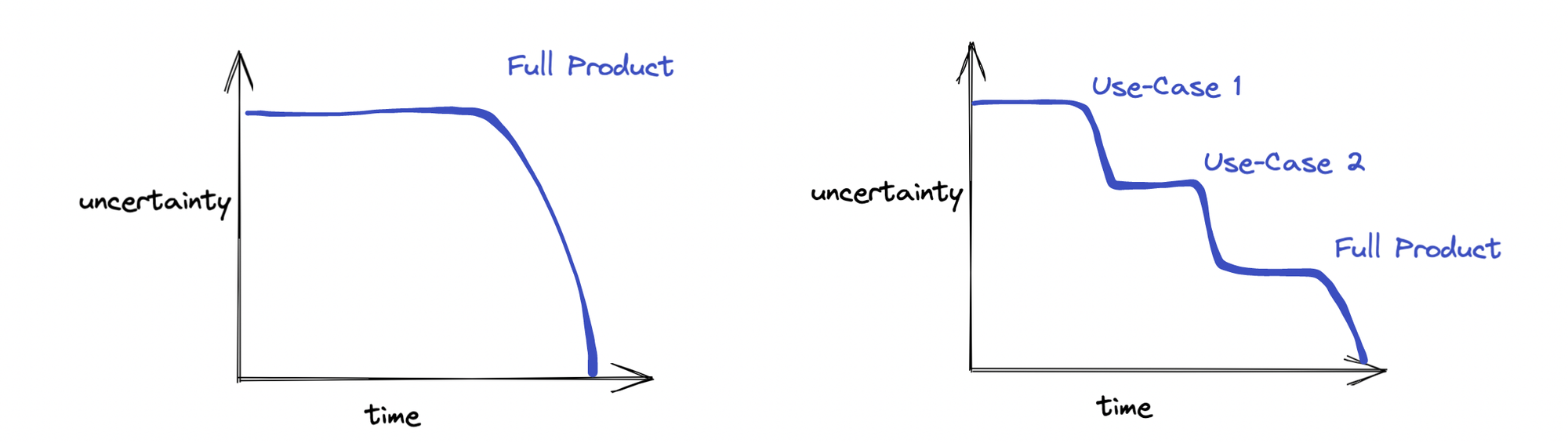 Another way of framing this approach is to prioritise reducing uncertainty. Uncertainty about whether the product is valuable, or whether the technology works.