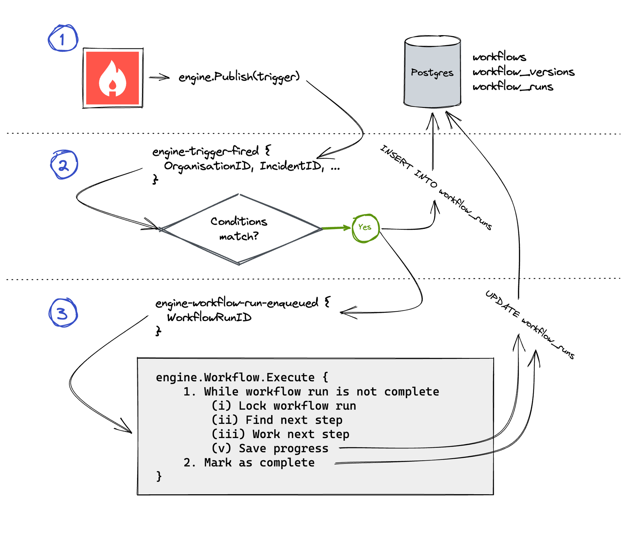 We’ve discussed the user-facing aspects of building and configuring workflows, and the APIs that power those flows. But after you’ve created a workflow, what decides when it should run? And executes each of the steps of a workflow, tracking progress along the way?