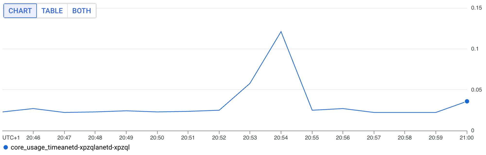 Now we had a workload (anetd) to look at, we looked at the logs but sadly there was nothing obvious there. We did see a decent jump in CPU, though: