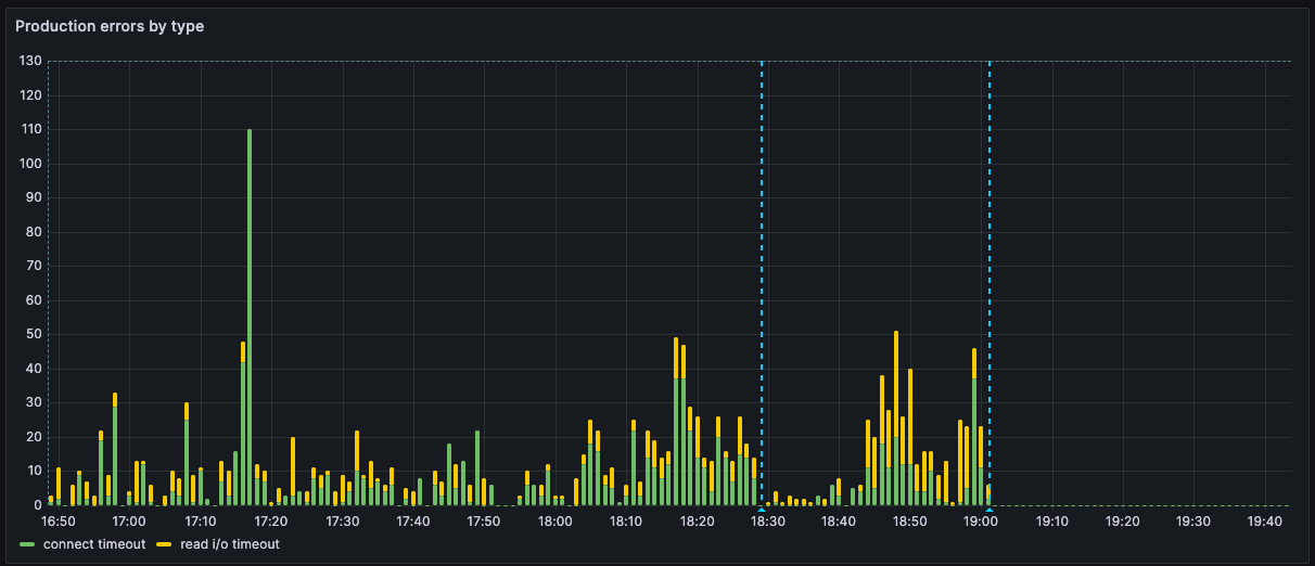 However, a few days later, we started seeing many more “read i/o” timeouts. The plot thickens…!