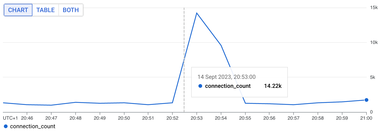 We weren’t quite sure what was happening, but we had a few initial theories. One of those was that there was potentially a race condition where connections were expiring. any goroutines were trying to re-use the same dead connection at the same time and subsequently opening up new connections en-masse.
