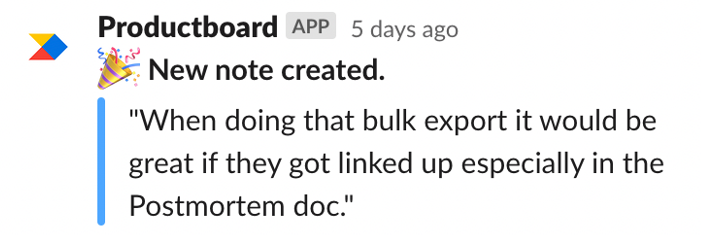 When we push a Slack Connect message from a customer into Productboard, the app pings the channel in a thread to say someone at incident.io took note of the customer’s feedback. It’s a small detail, but it’s proven really powerful to make our customers (duly) feel heard. We’ve had quite a few users say things like ‘Thank you for listening’ off the back of those.