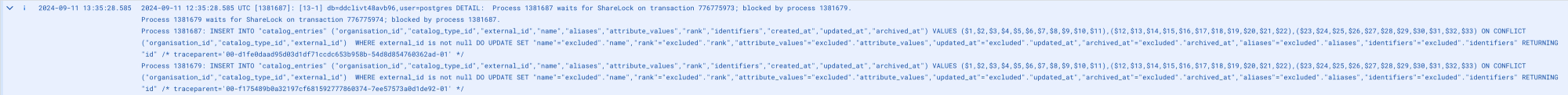 In this case, the number of rows to insert was small enough to simply sort before upserting, solving the deadlock and concluding our investigation 🙌