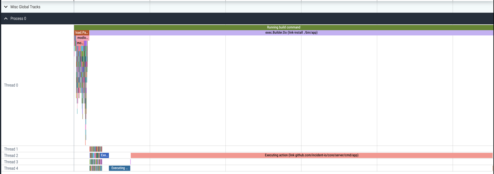 Well, if you remember our categorization of fast/medium/slow builds, a consistently large part of each build was time spent in the linker, where the compiled Go packages are joined together into one executable binary.
