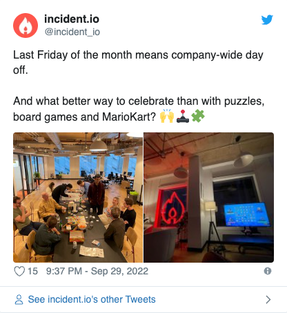 With incident.io, we are (infamously) an office-first company. But, to my surprise there are no “mandatory” office days. Instead, people actually wanted to be in the office 🤯