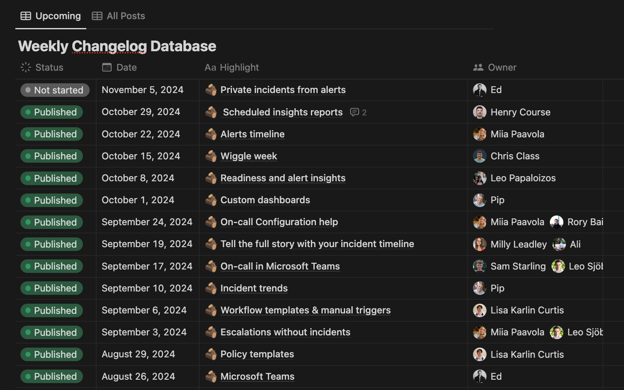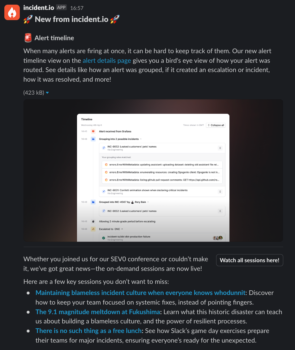 Writing a meaningful update for customers every week has been held sacred at incident.io since we started the company. We've written over 200 of them in the past 4 years, and we recently celebrated going 2 years straight without missing a single a single week đ