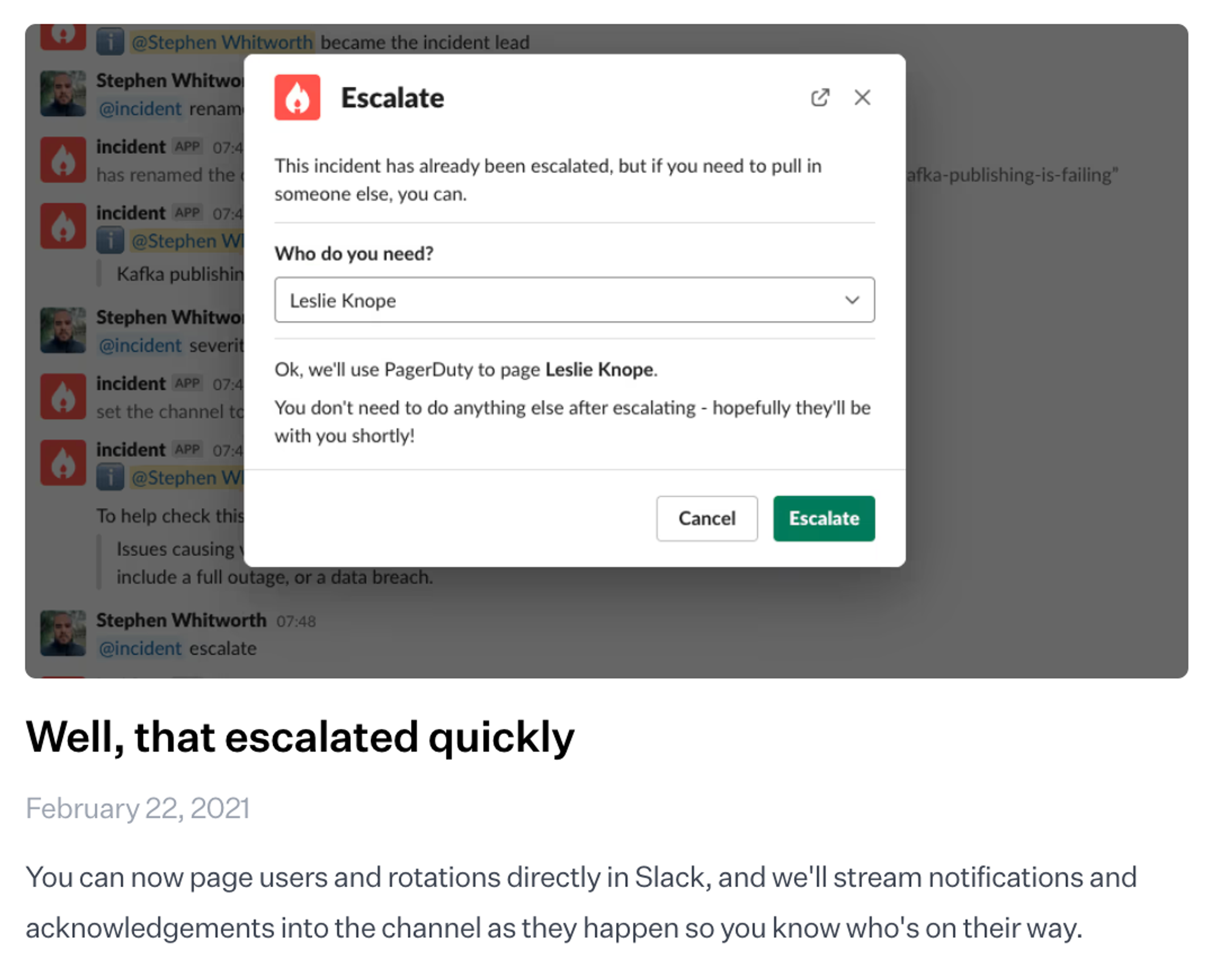 curl https://incident.io/changelog.xml | xq | jq -r '.rss.channel.item | map({title,link,description, pubDate} | .pubDate |= gsub(" GMT";"") | .pubDate |= strptime("%a, %d %b %Y %H:%M:%S") | .pubDate |= mktime | .pubDate |= todate | .pubDate |= fromdateiso8601 | .pubDate |= strftime("%Y-%m-%d")) | sort_by(.pubDate) | reverse | .[] | [.title, .link, .pubDate, .description] | @tsv' | pbcopWe do a large proportion of our customer support in Slack. We started out by subscribing every channel to our changelog's RSS feed so each week, when we published, all customers got a post in their channel.