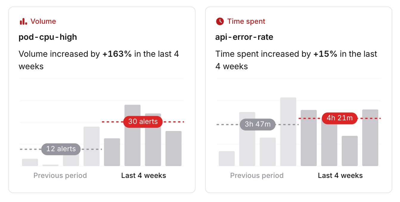 “You’ve spent 90% more time dealing with this alert in the last 4 weeks.”