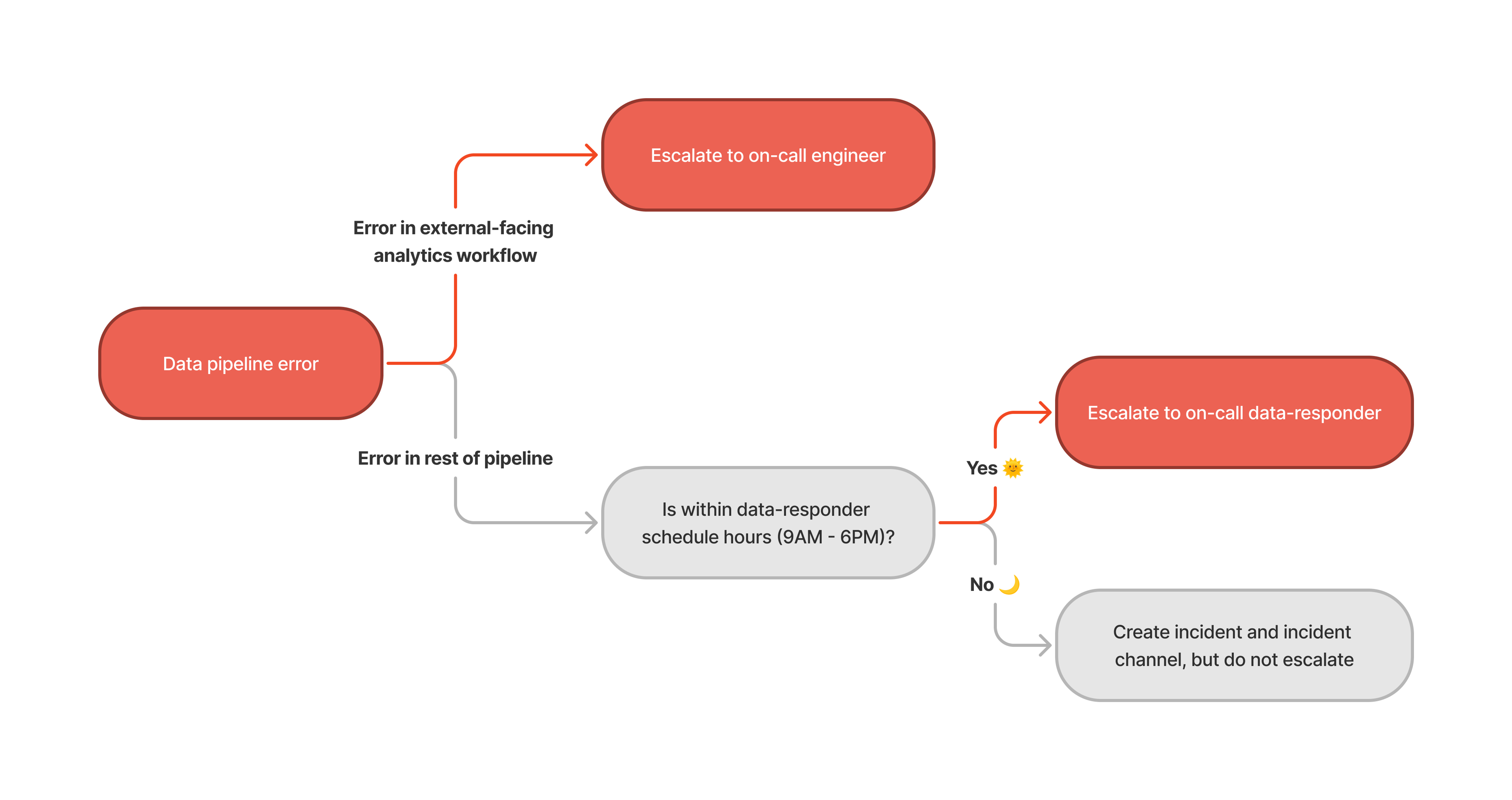 Being able to set these variable-based workflows is particularly valuable because our in-app analytics (e.g. Insights) are also powered by the same parent dbt run job. This means we’re able to route errors that have customer-facing impact to the team of on-call engineers (e.g. if the failure occurs overnight), and to the data team should it be an internal error, within working hours.