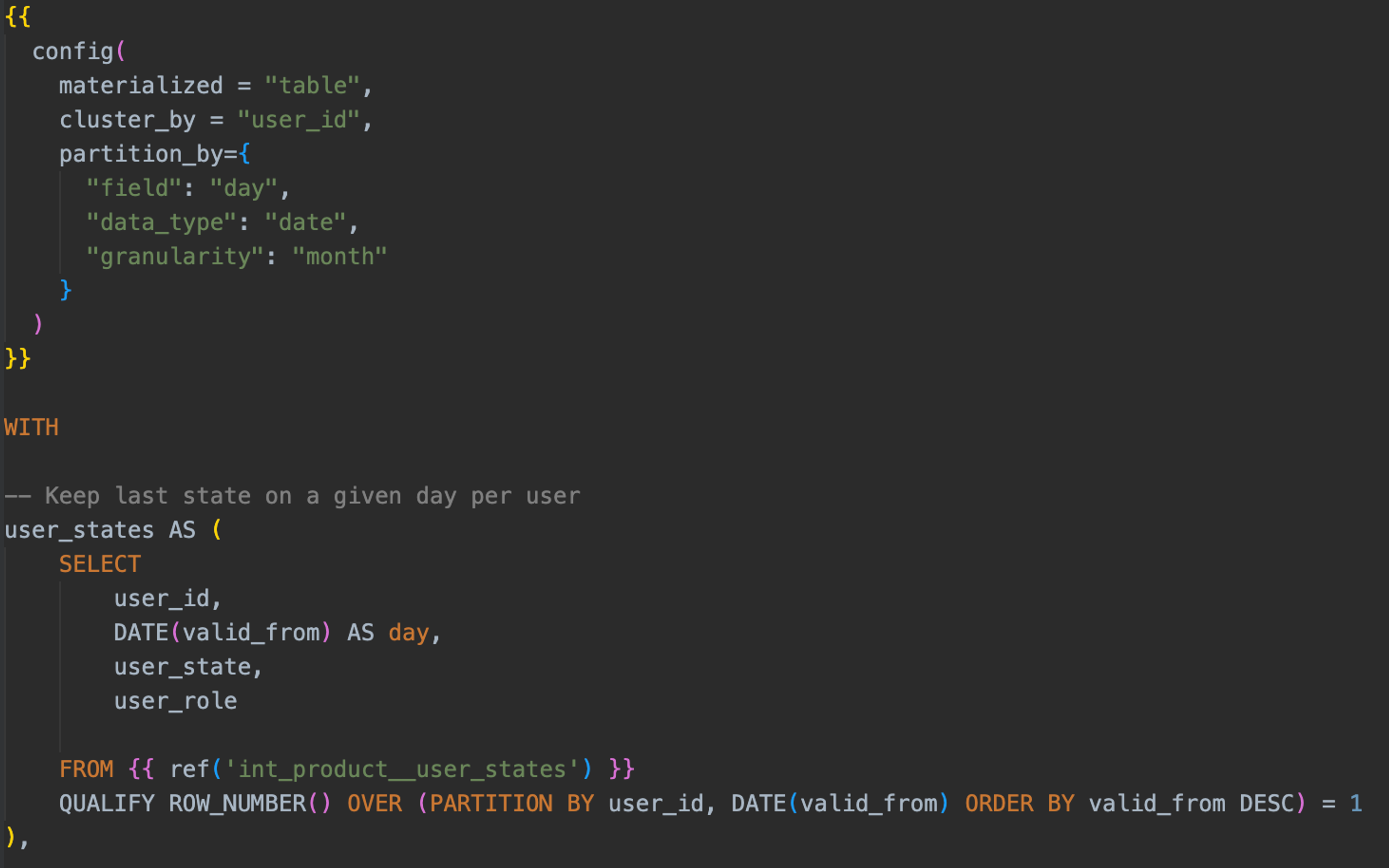As this is the most important part of our dbt pipeline, we do a couple of things to keep the modeling as neat as possible and make sure we only surface things in our customer-facing insights that we intend to: