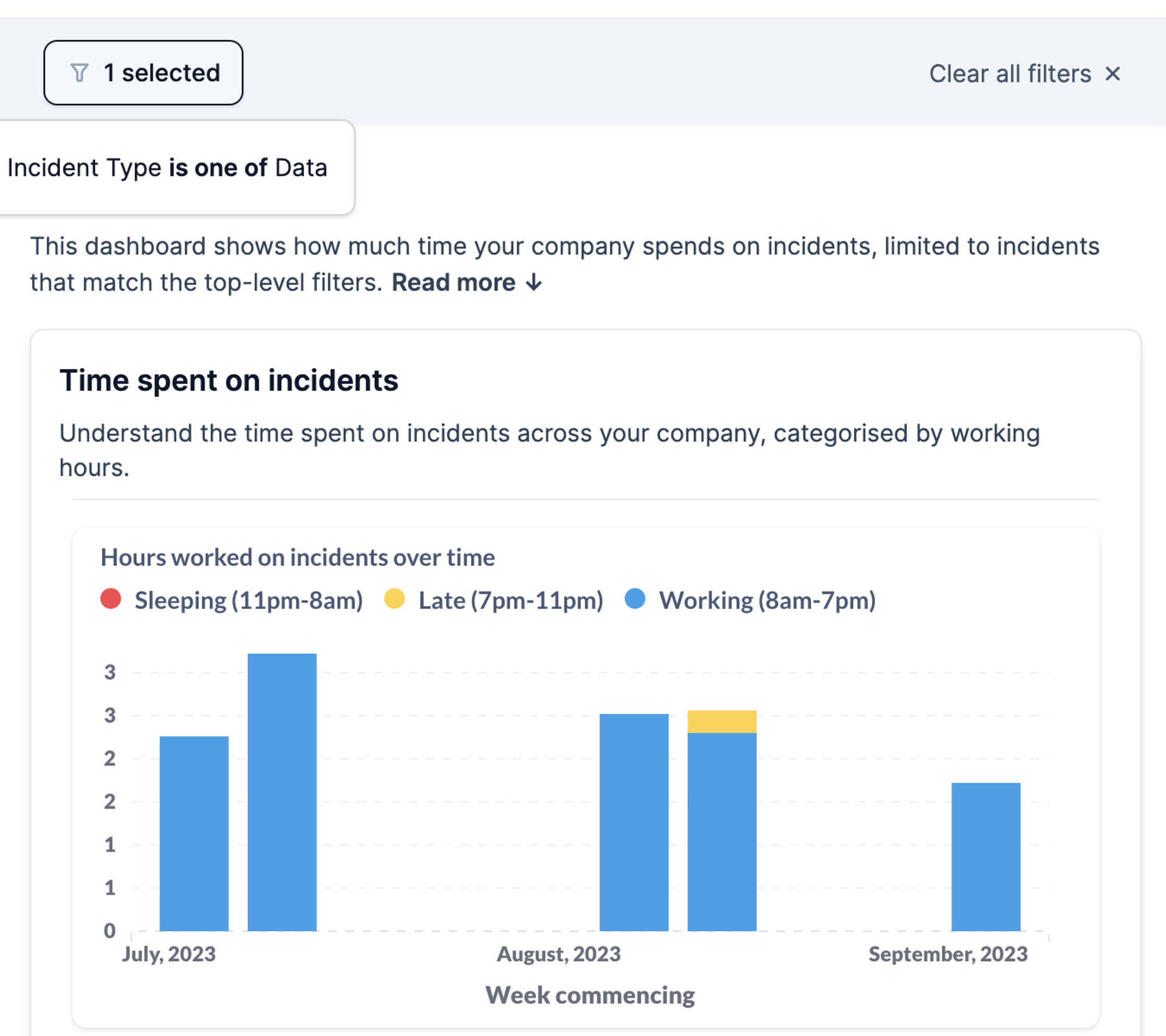We calculate time spent on incidents using time between items in an incident channel (messages, updates, actions) and infer whether it’s continuous time spent.