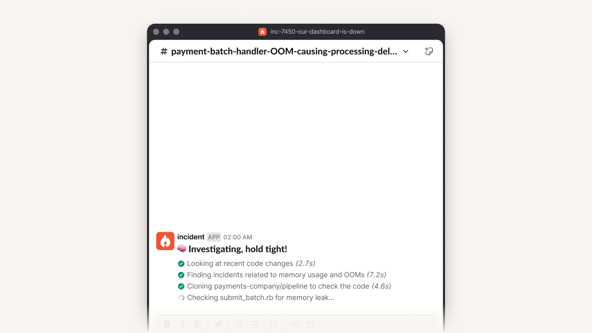 AI SRE is live in production internally at incident.io and with a handful of our customers today. So far we've found that it: