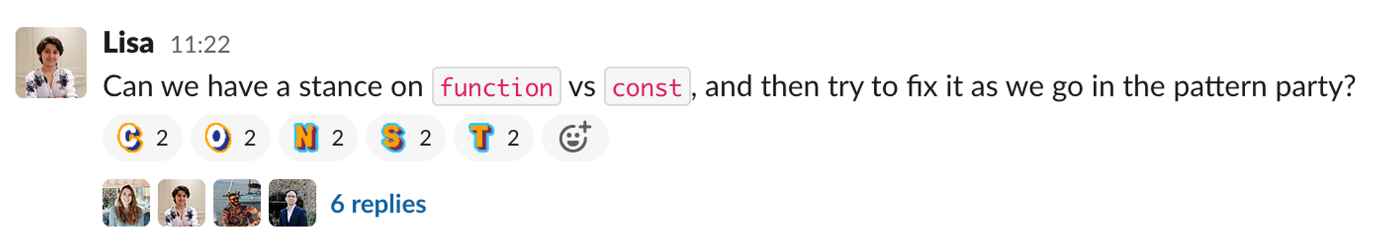 Once the Pattern Party is over, having a consistent codebase and engineers who are all familiar with its design patterns raises the pace of every feature we build going forward, and accelerates the onboarding of every engineer who joins afterwards. We think the trade-offs are worth it.
