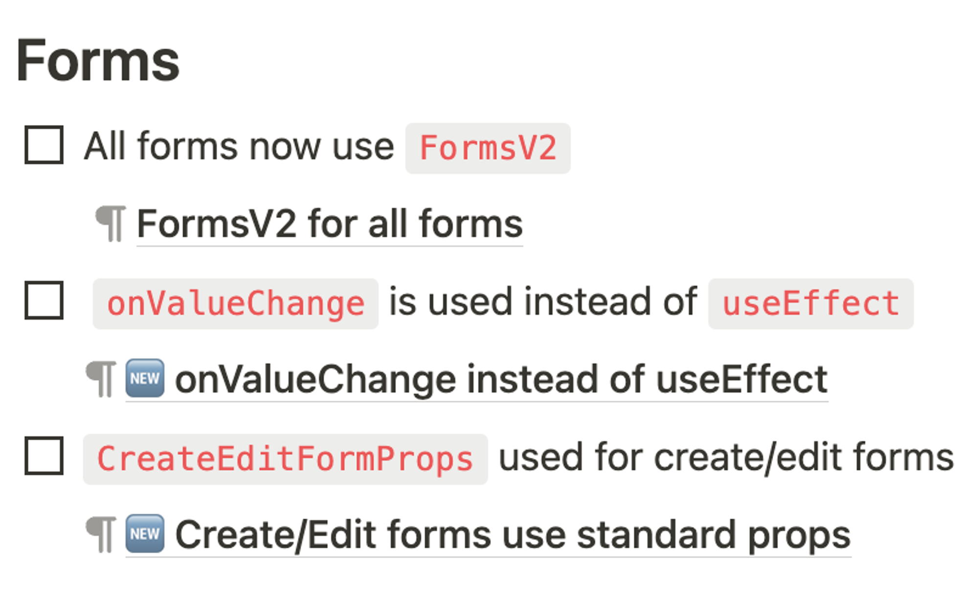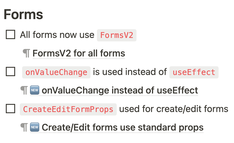 Once consensus is reached, the small group can document the agreed patterns, and set out guidance for how to migrate code that doesn’t match the pattern over, including a migration checklist to make sure everything is covered.
