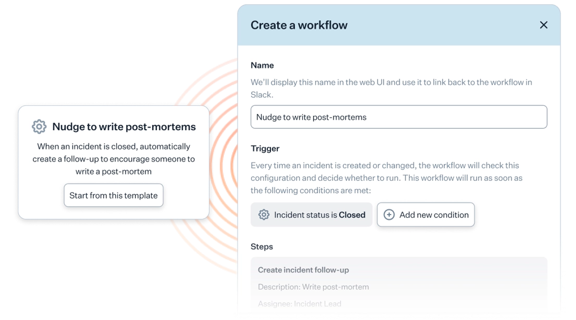 Say someone closes out an incident; you can then create a prompt to remind them to complete a post-mortem within a day or two.