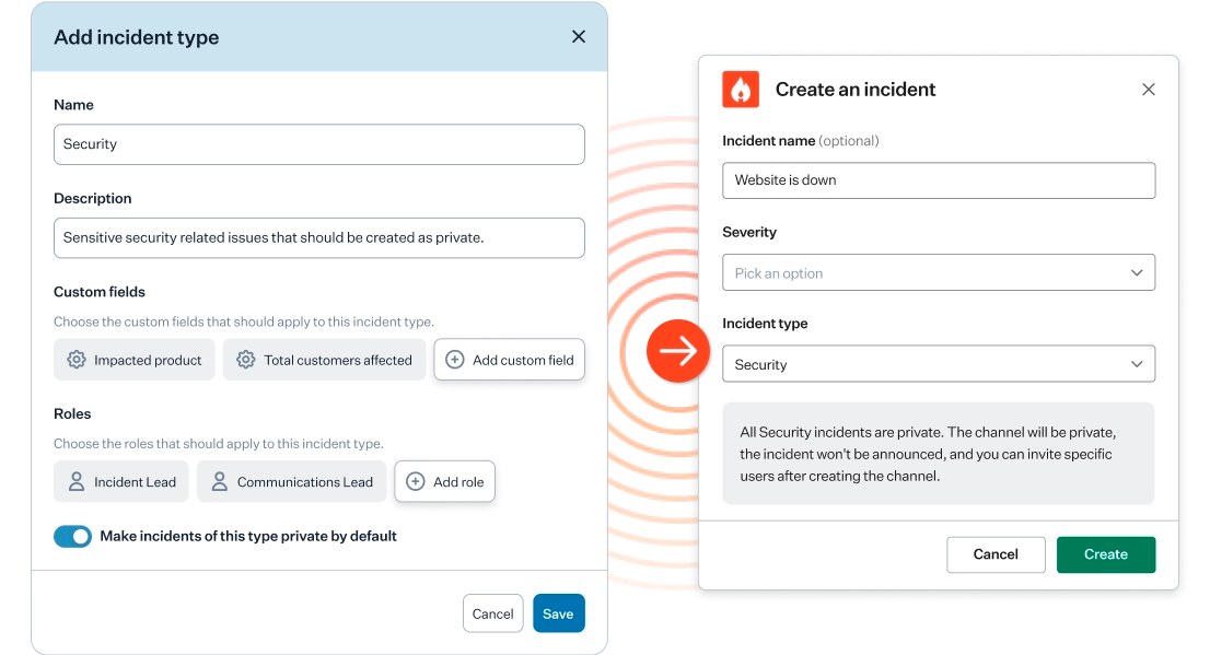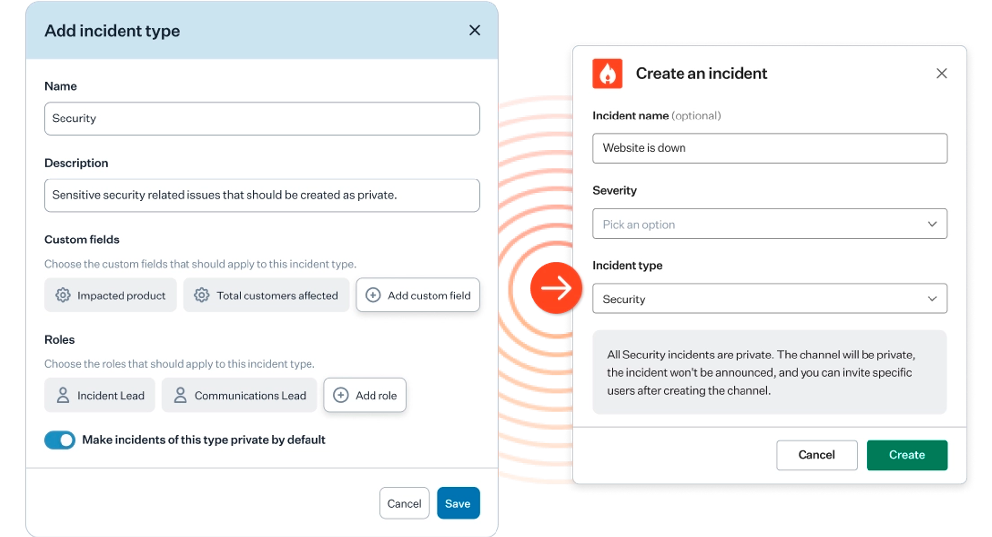 For example, if someone declares an incident of a certain severity, you can create an automation that alerts a specific group of people when that happens. You can also auto-generate prompts that appear when particular actions are taken.