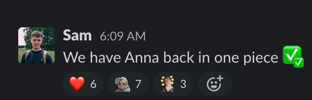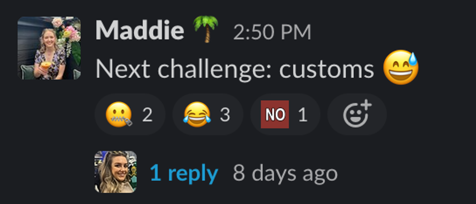 Now Anna had to make it through customs without a single hitch and successfully deliver the swag package. We all waited anxiously for updates in our incident Slack channel.