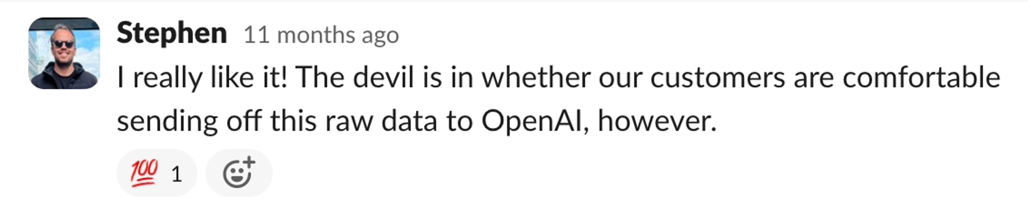 In the end only a couple of customers objected, partly because our answers to their questions were not alarming. OpenAI does not store data for training, and on top of that we’d negotiated a super-strict zero-data retention agreement which meant they couldn’t even store our logs (more on that here).