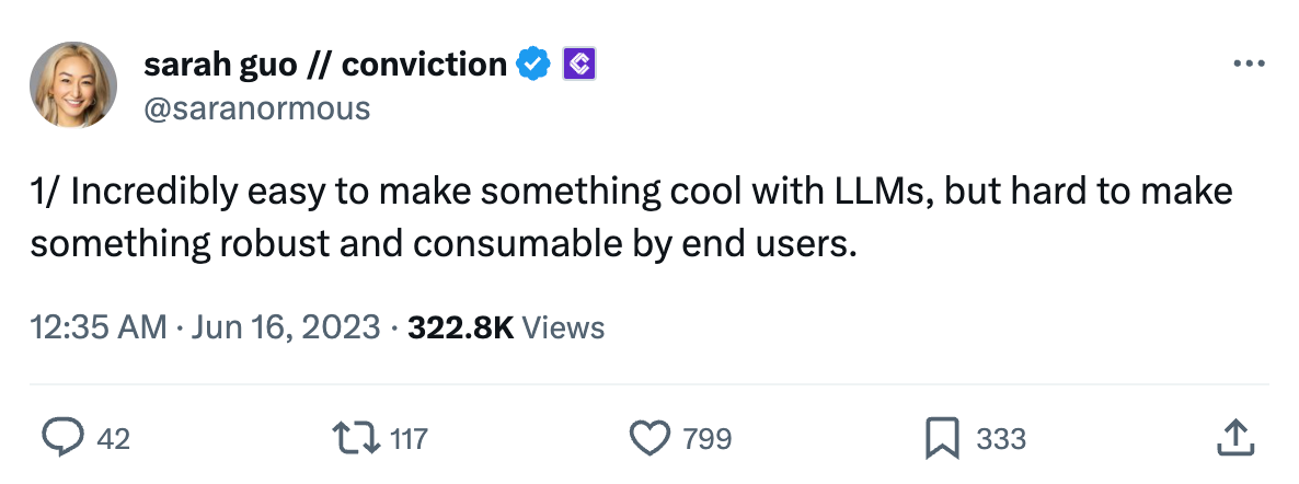 Since the advent of ChatGPT, companies have been racing to build AI features into their product. Previously, if you wanted AI features you needed to hire a team of specialists to build machine learning models in-house. But now that OpenAI’s models are an API call away, the investment required to build shiny AI has never been lower.
