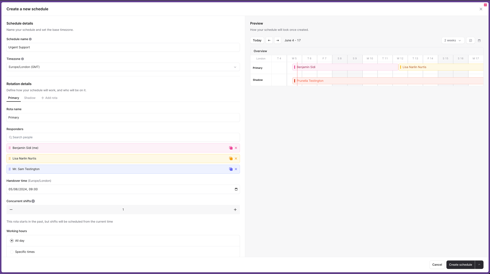 In the case of On-Call Schedules, this came with the added bonus of being able to use our Preview: you get a clear, visual representation of the result of your changes without having to commit them. This is especially valuable in critical areas like On-Call.