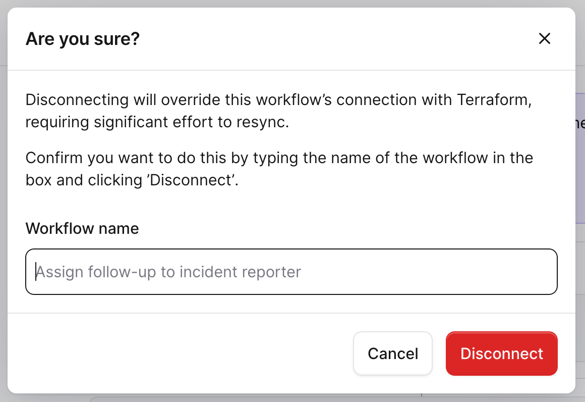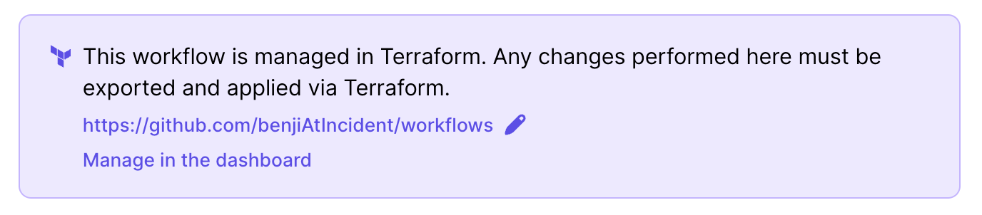 I mentioned earlier that we display your terraform-managed resources alongside those managed in our UI. This might have given you pause: surely someone's going to edit one of my workflows and leave me with an out of sync state.