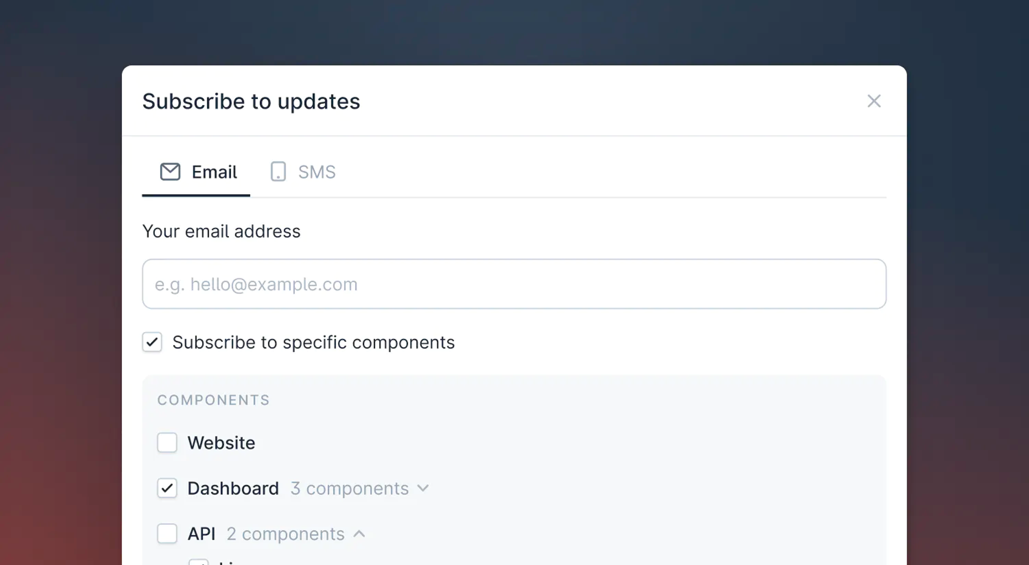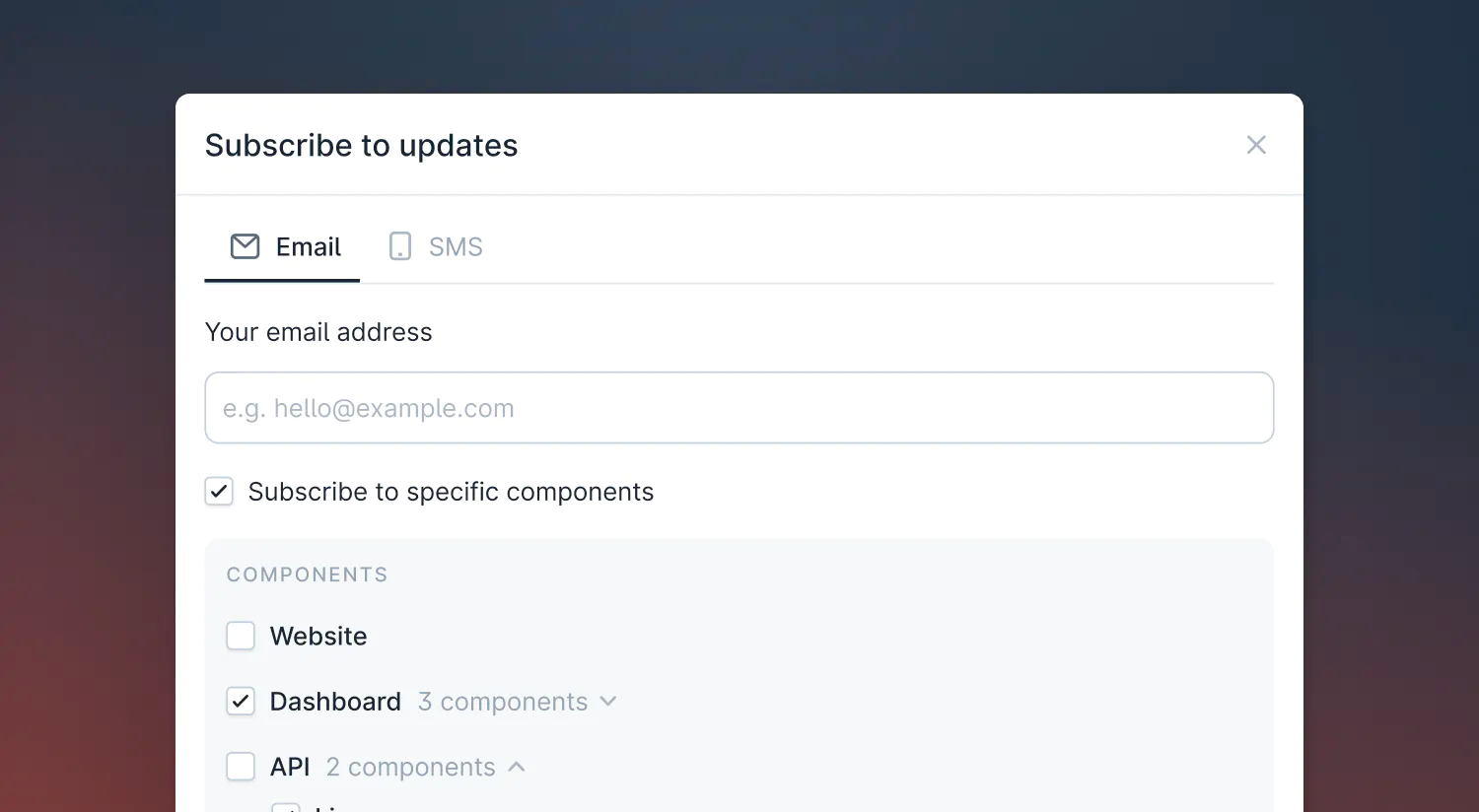 Subscriptions to individual Status Pages components is now live! This feature allows customers to filter out updates that aren’t relevant to them—perfect for companies that have many components and a segmented user base.