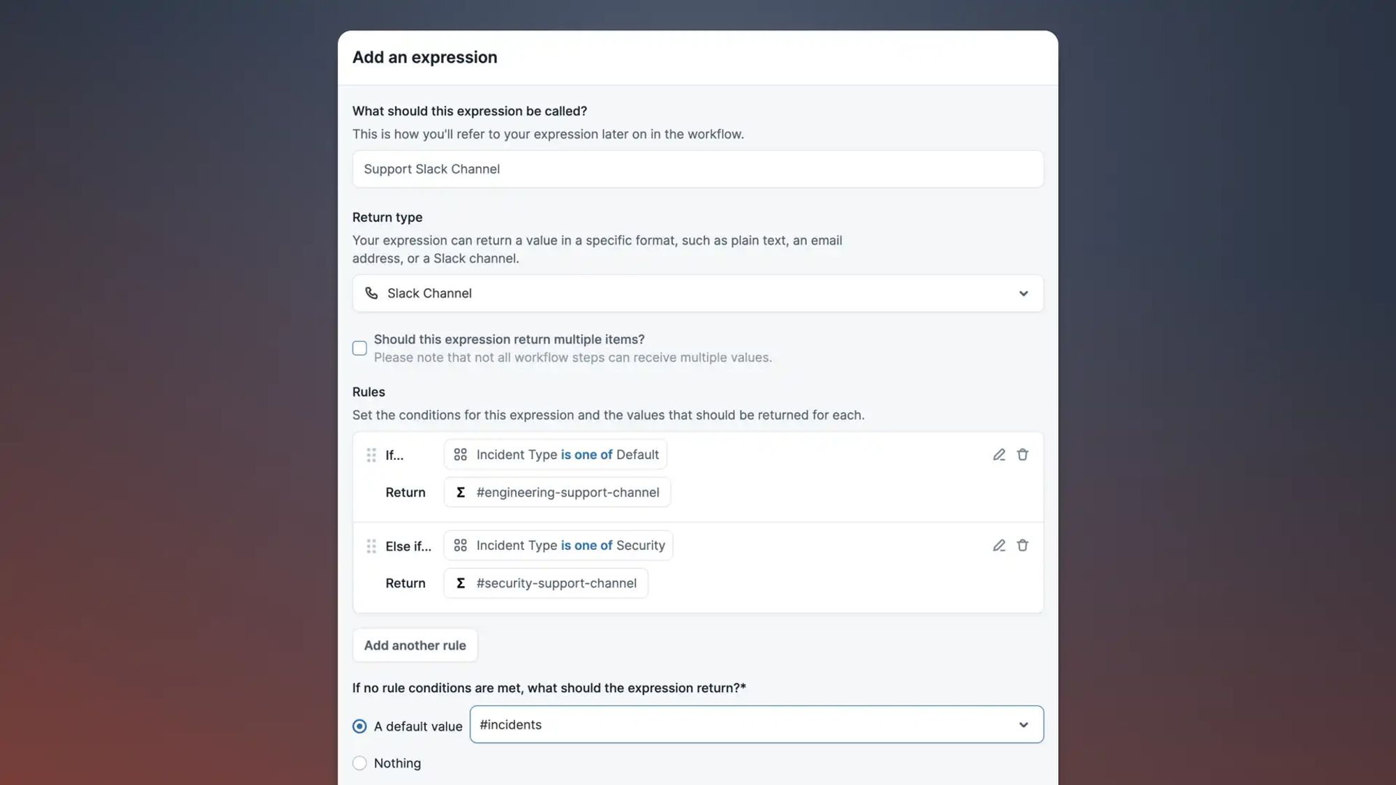 Workflows are a powerful part of incident.io that allow you to automate certain actions and behaviours, effectively encoding parts of your incident response process. We’ve given this superpower another boost by shipping expressions. With an expression, you can vary the behaviour of the steps within your workflow, based on a set of conditions. For example, you can escalate to a different team based on the incident severity. Read more here.