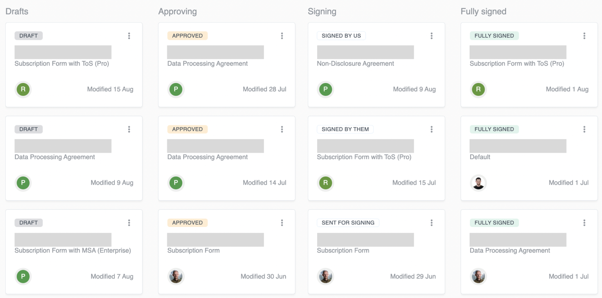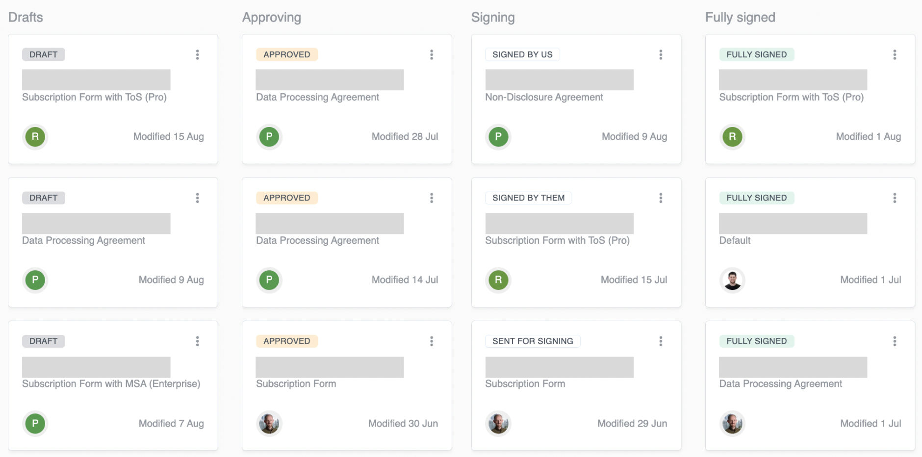Juro is the tool for creating, sending, and signing contracts. This streamlines our contracting process to a single tool, rather than working across Google Docs, email, and then DocuSign. Juro also has functionality for approval workflows (e.g. "Charlie must approve all contracts over $10,000 before they are sent for signing"), basic version control, and more.