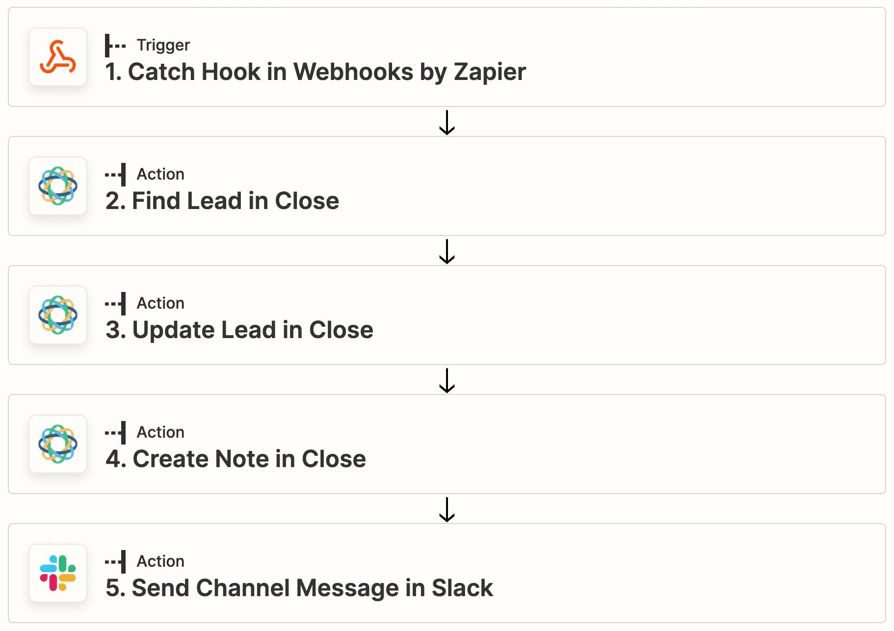 A Zap to add customers that have filled out the qualification form to Close, and send an update to Slack when this has happened