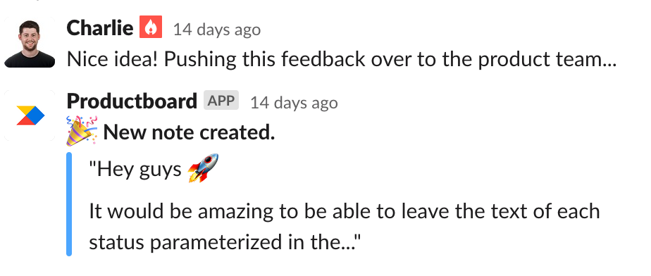 The final piece in supporting customer queries is Productboard. It serves as the primary interface between our Product team and Customer Success. When product feedback arrives in Intercom, it is tagged as “feedback”, which sends it straight over to a triage queue in Productboard. If the query lands in Slack, it’s just as easy to tag a message and fire it off to the triage queue. This ensures that when we release a feature in the future, all customers that have requested this feature can be informed!