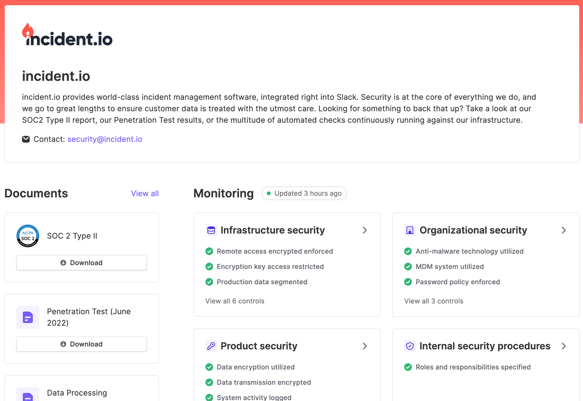 Customers (rightly!) question the credentials of companies they interact with to ensure that they comply with their own requirements. These requests often happen in the form of a questionnaire (via email or a third-party system) asking for evidence about security postures.