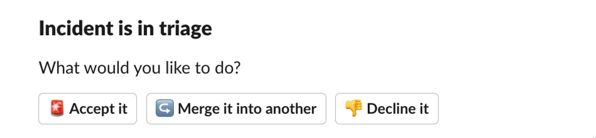 When one is created, you'll get a Slack message with the following options