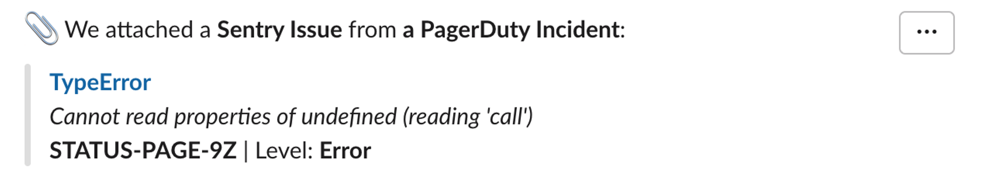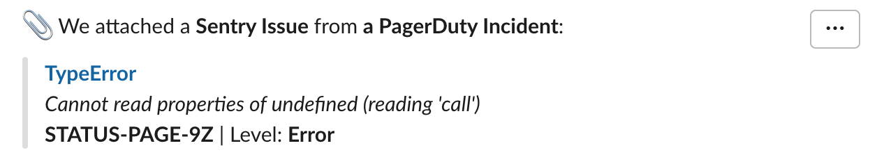 If you choose to create an incident, you'll get an incident with the PagerDuty alert attached. Additionally, we'll fetch its details from PagerDuty. If we can identify attachments on it - such as the originating Sentry error - then we'll attach them to the incident as well.