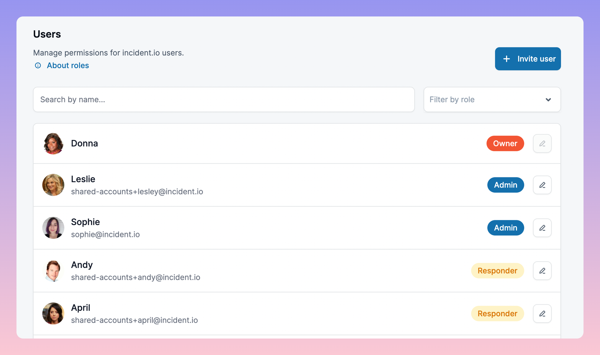 That meant that getting our initial choice of owners and admins wrong was less risky: although a poorly-chosen owner could hit the “enable roles” button and see all private incidents, that would be an active bad choice from them. However, we didn’t want to make everyone an owner and let people lower privileges manually - that would be a huge amount of work for some of our larger customers!