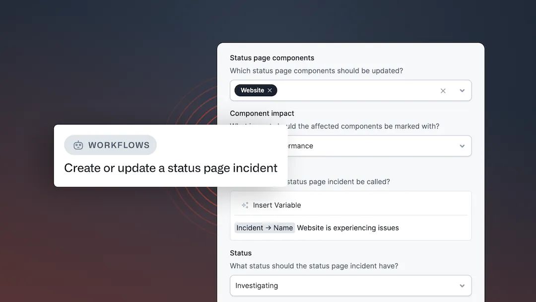 Not everything needs to be done manually. When users think about automating their status page, they’re often looking for ways to update the status of their components or publish updates to subscribers. With Workflows, you can now automatically update your public status page based on criteria – e.g. for critical incidents, immediately publish a message on our status page.