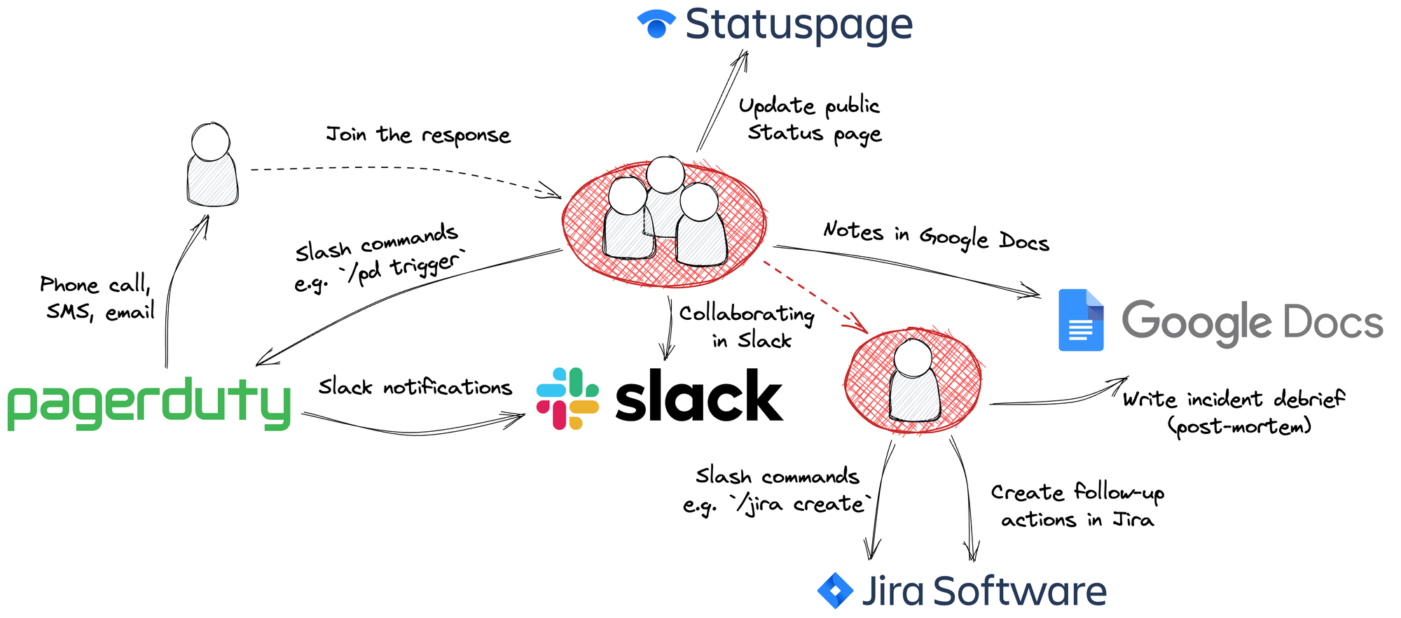 What’s interesting here is the absence of ergonomic connectivity between these tools. You can connect PagerDuty to Slack, and have Jira auto-escalate to PagerDuty, but there’s a missing substrate here that joins up the various software solutions. This results in one of two things happening: