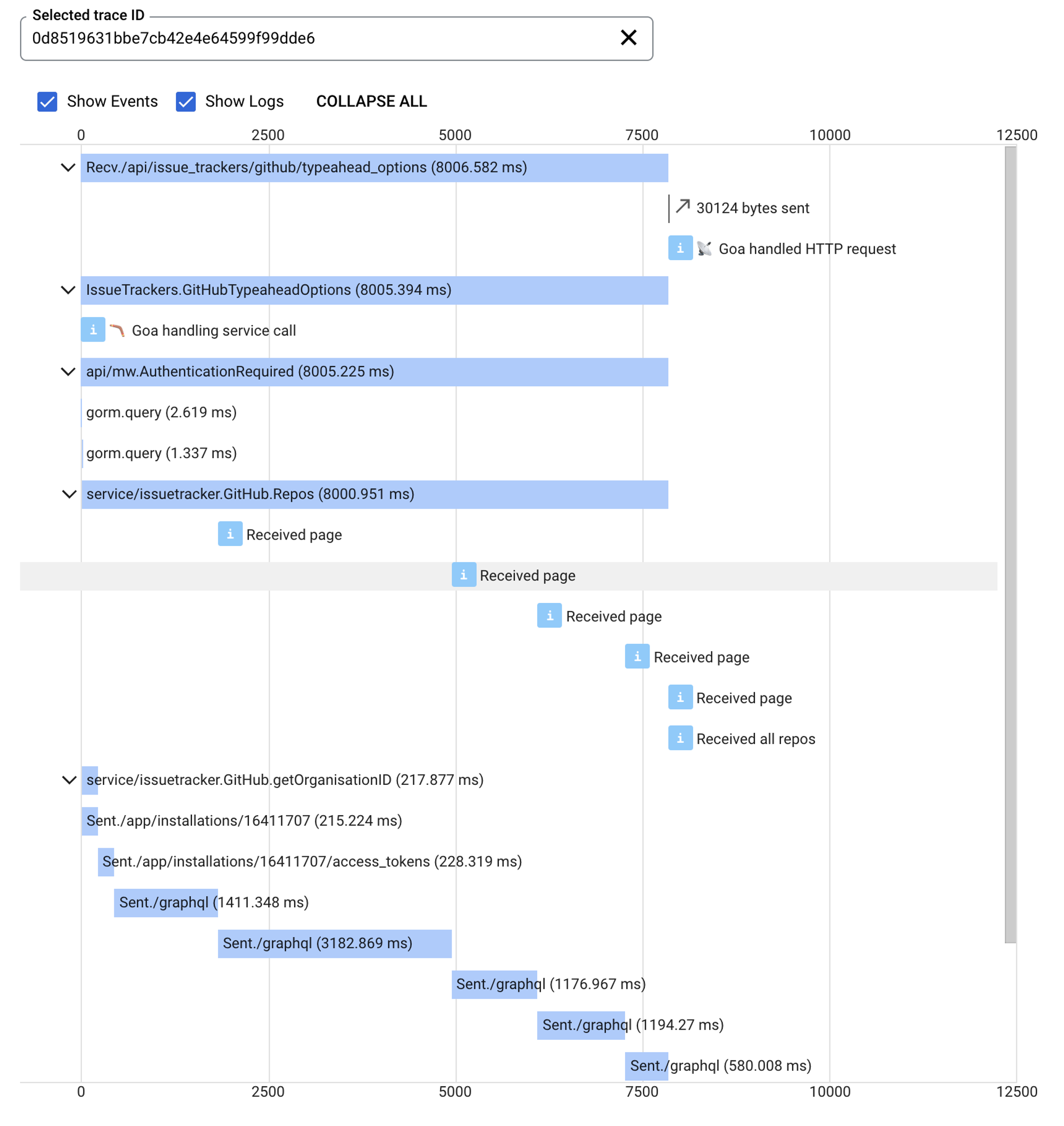 This made Google Cloud Trace an obvious choice, and one that was easy to configure from our Go app: