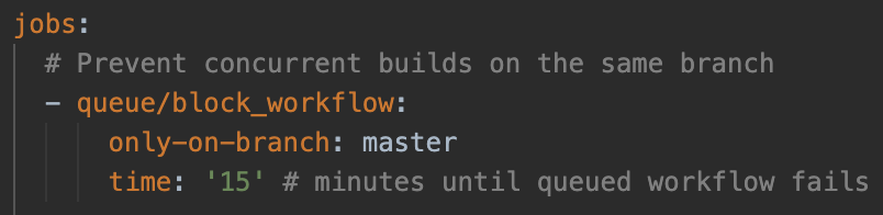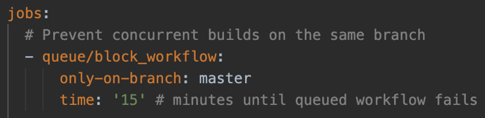 The fix for this was fairly straightforward, we used the queue workflow orb developed by an engineer at CircleCI. This checks for concurrent workflows (our “deploy” workflow is essentially our dbt pipeline) running on the same branch, and makes a workflow wait for the prior one to finish before running.