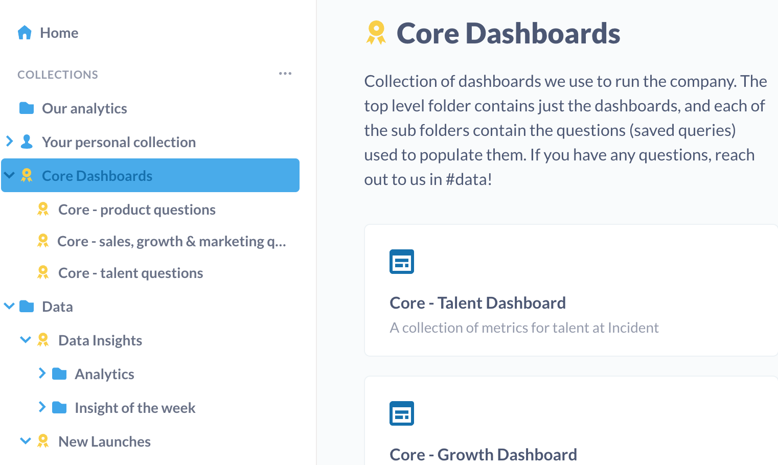 It also optimises for users who want to use Metabase as ‘read only’, as the core dashboards folder is basically the one-stop shop for everything we use to run the company with.