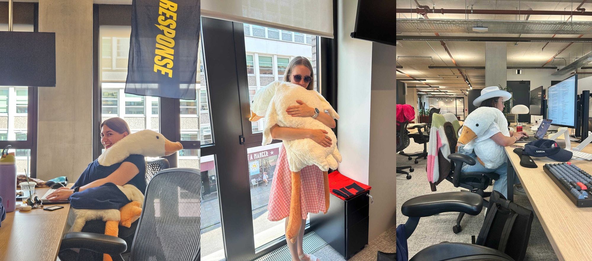 There are lots of laughs, there are silly & lovely little post-it notes left on desks, and there is a giant plushy goose that watches out over City Road (if he’s not busy giving moral support to one of the team).