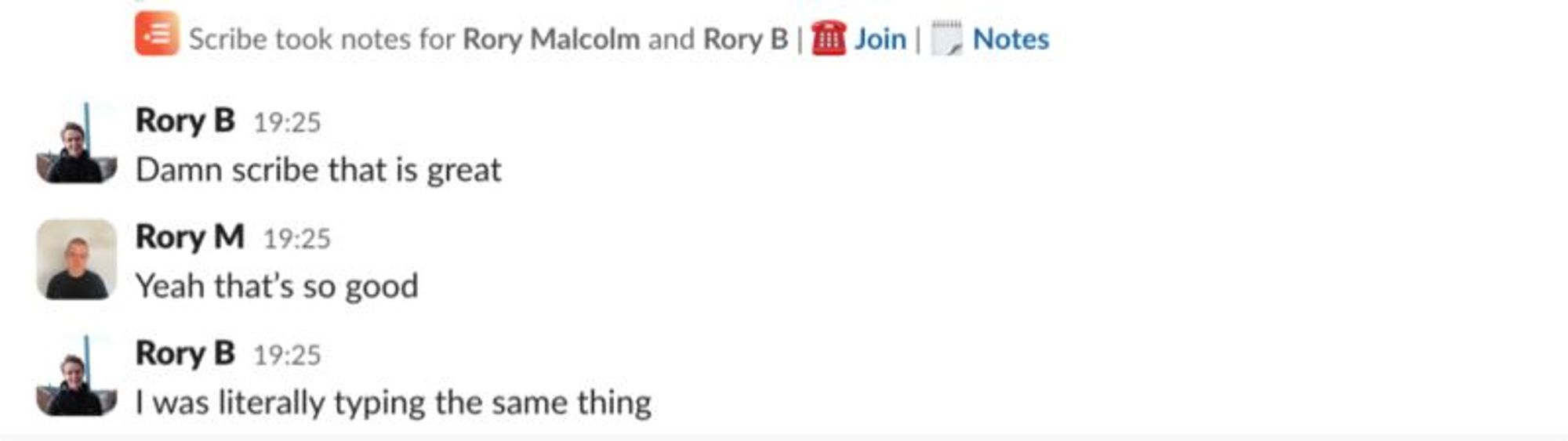 With Scribe, that’s all taken care for you and synced back to the incident channel for others to follow-up. If you’re an executive trying to follow along on an incident, long gone are the days you had to write “Can someone update me on what was discussed on the call?”. It’s just there!