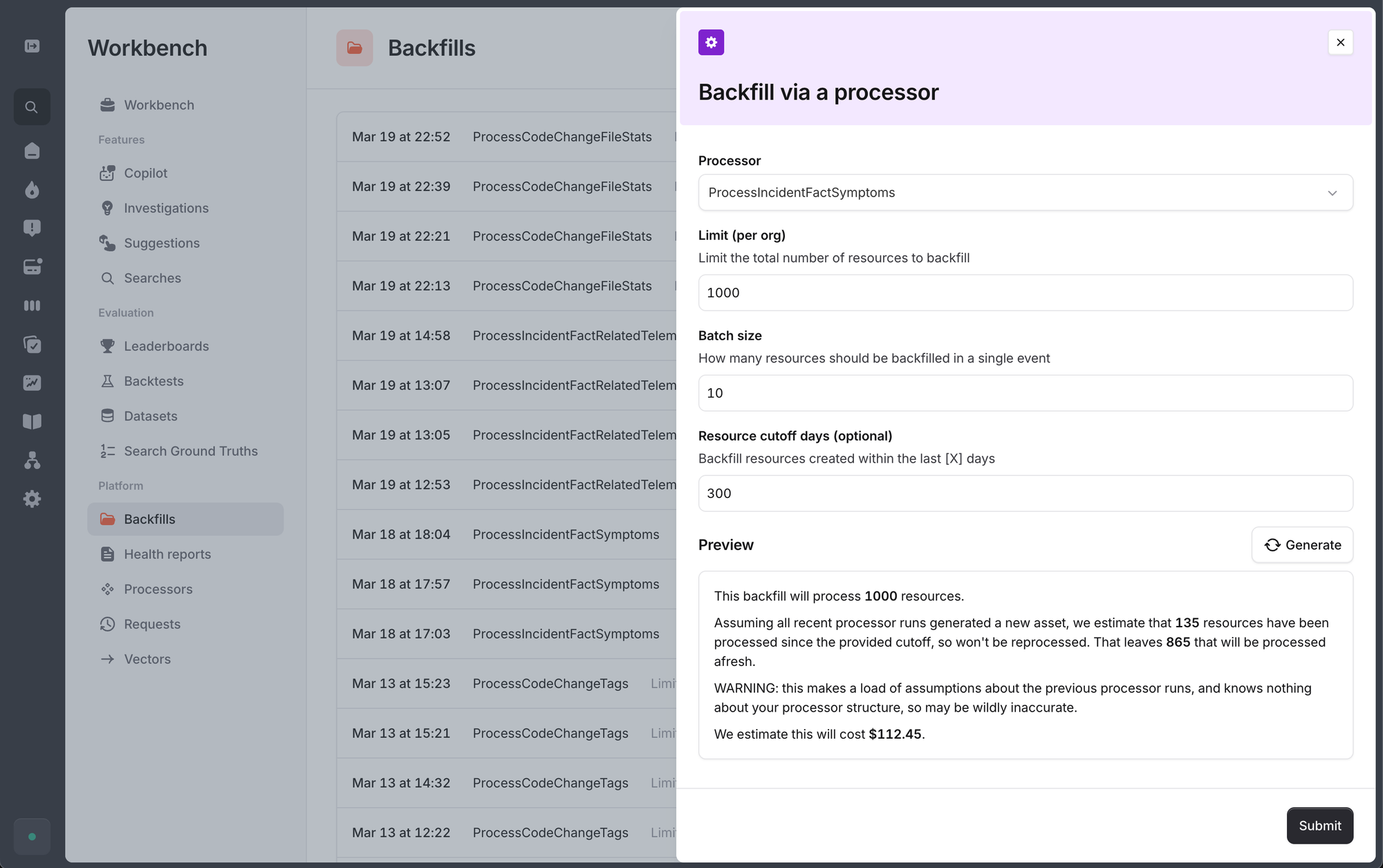 Given we know the historical cost of each processor run, we can extrapolate that to give a grounded estimation in what a run of these backfills will cost in LLM spend - giving us a heads up before we spend $50,000.