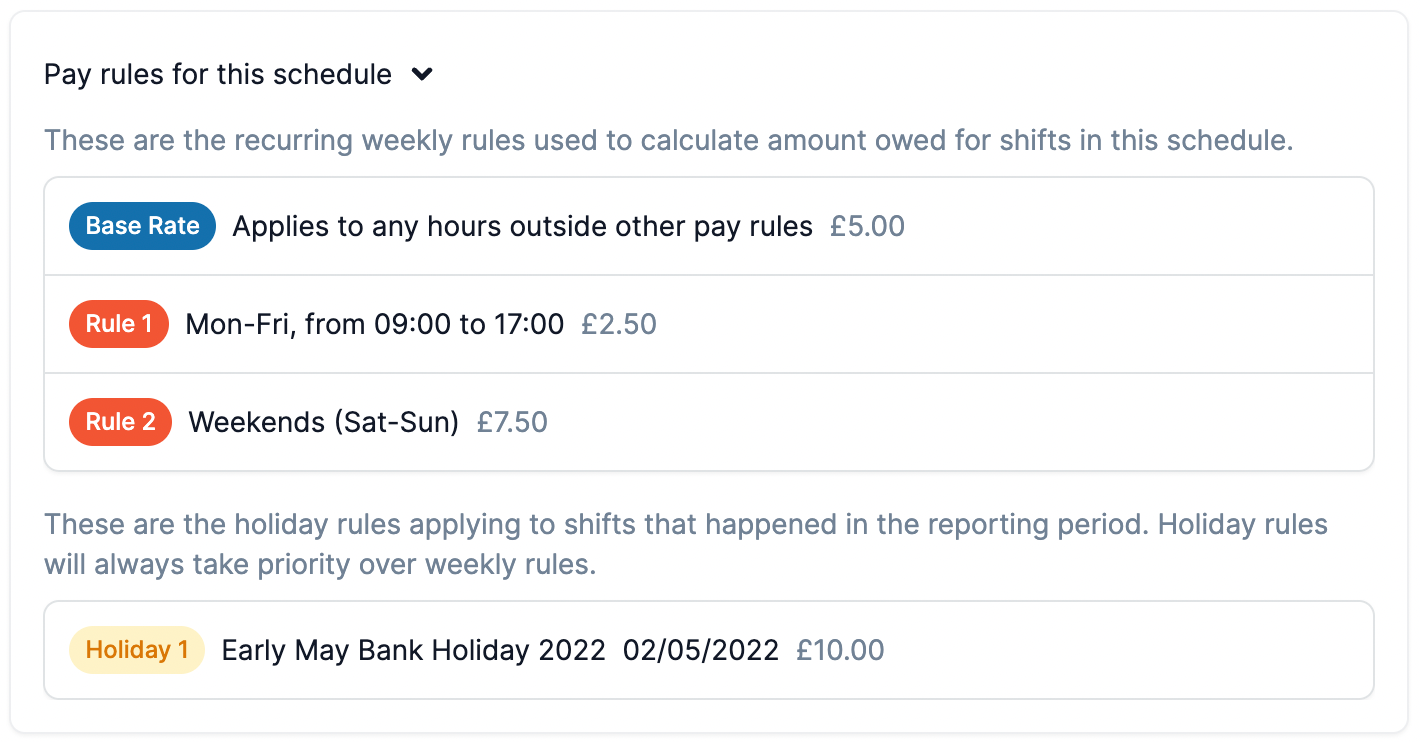 You can use the calculator to generate reports based on your on-call pay configuration, using the schedule data from inside PagerDuty. The calculator supports weekly rules (e.g. extra pay outside working hours, or on the weekends) as well as holiday rules (think double-pay for Christmas).