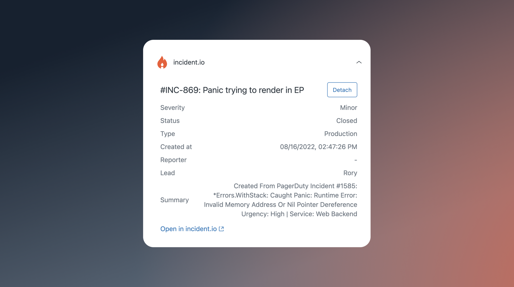 We launched attachments earlier this year to help keep track of all the different links sent in incident channels.