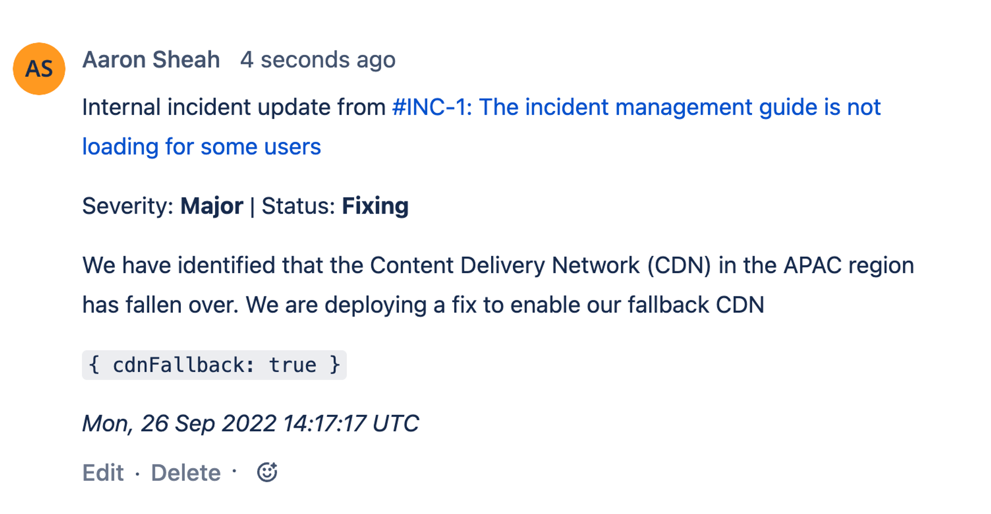 Additionally, when a user sends an incident update, a comment of the update will be posted under the auto-exported Jira ticket.